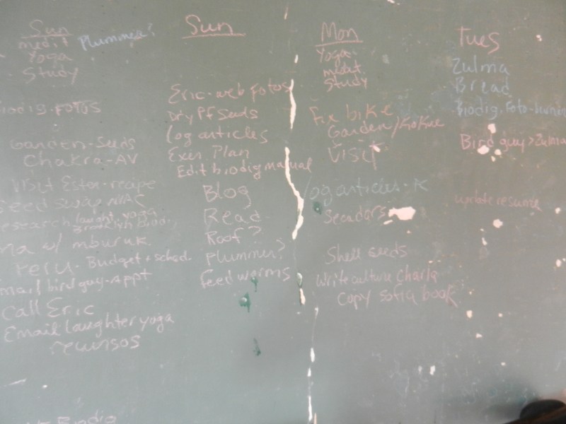 I live in a classroom in an old school and in it is a full-size chalkboard which I use every single day to make To-Do lists, jot phone numbers or write reminders to myself. Here’s this week’s list. haha
