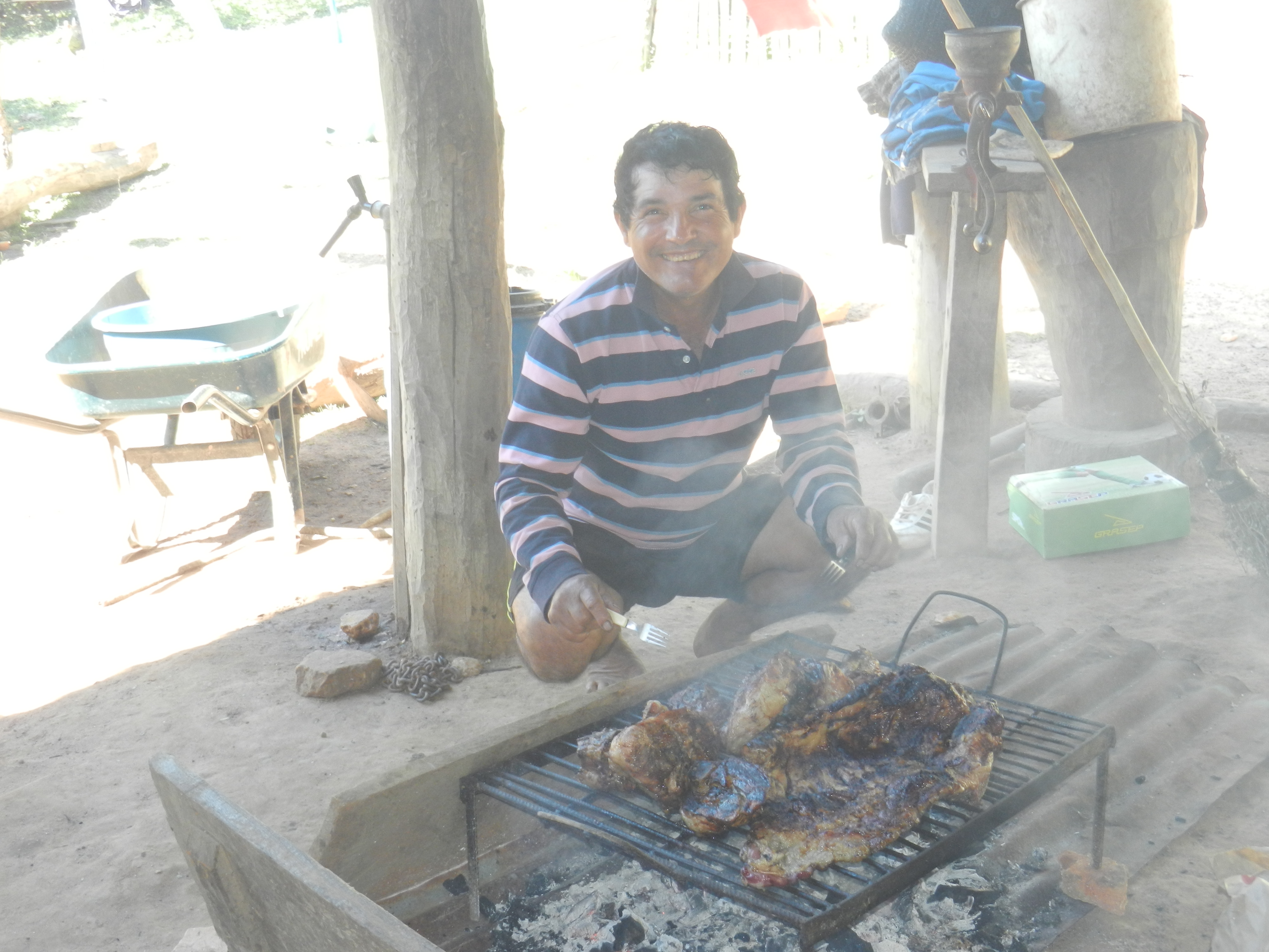 Elvio BBQing pork killed just the day before. He LOVES having his picture taken. 🙂