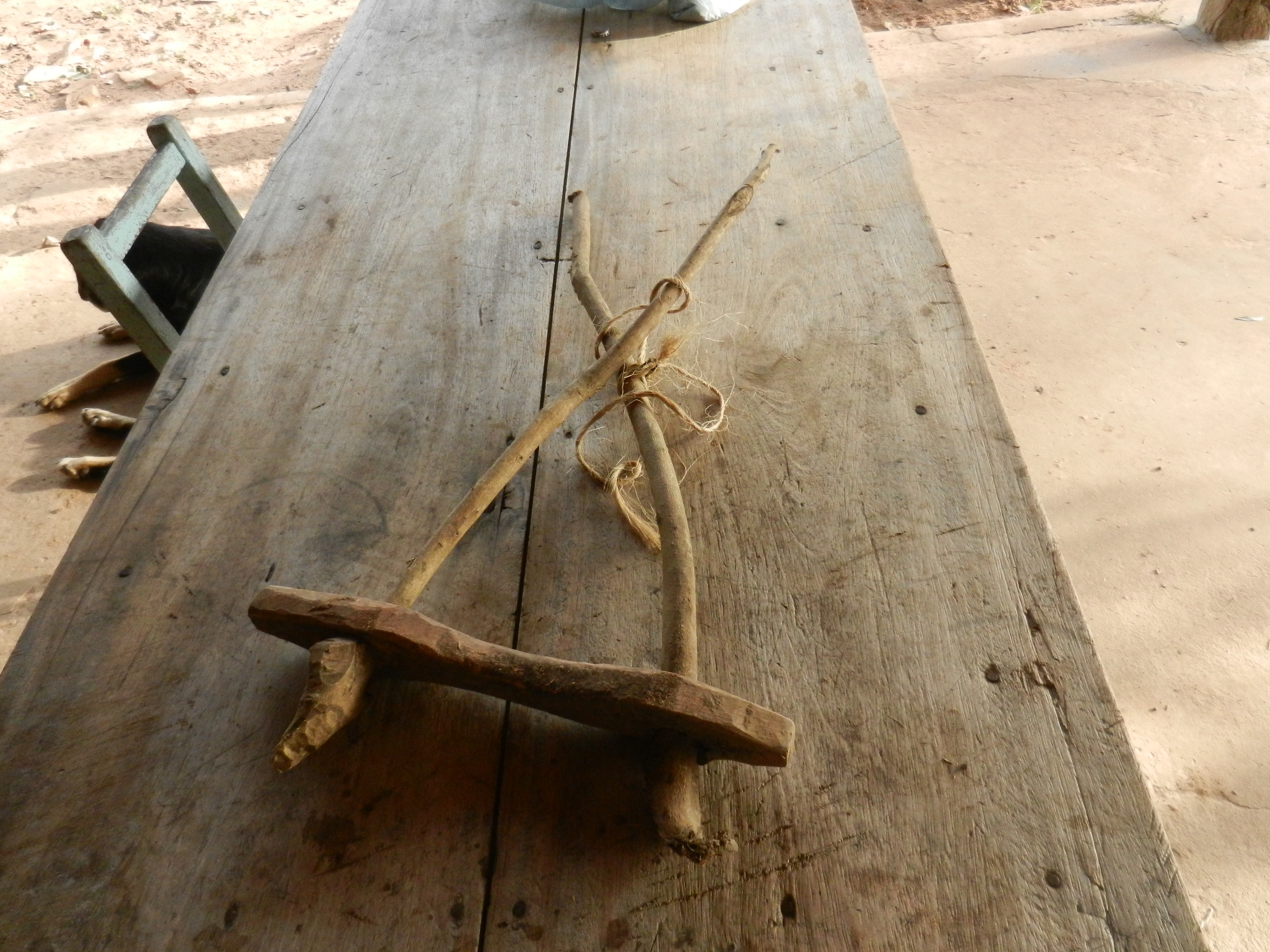 Pig collar: fastens around the neck with pointy ends up to keep pigs from climbing through wire fences