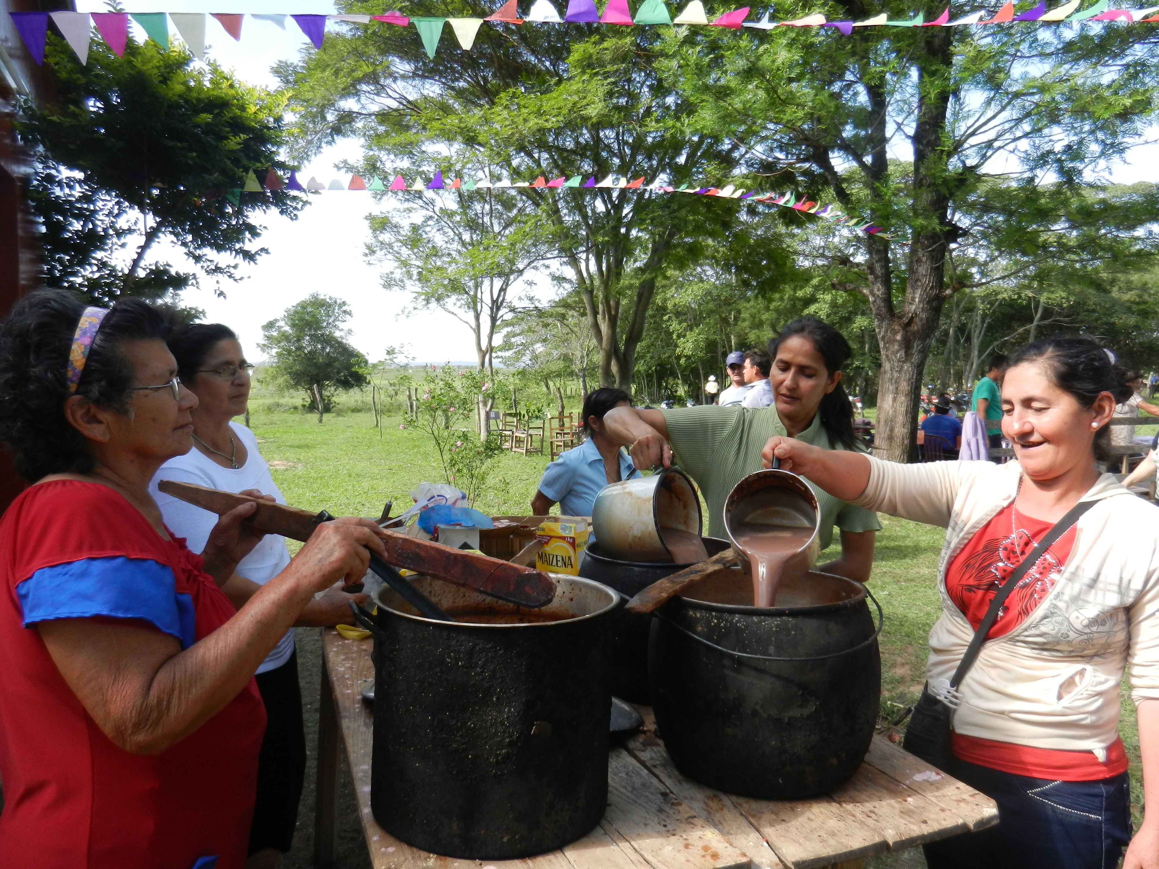 Fiesta Patronal 2014; this is how you make hot chocolate in PY! CAULDRONS over open fire