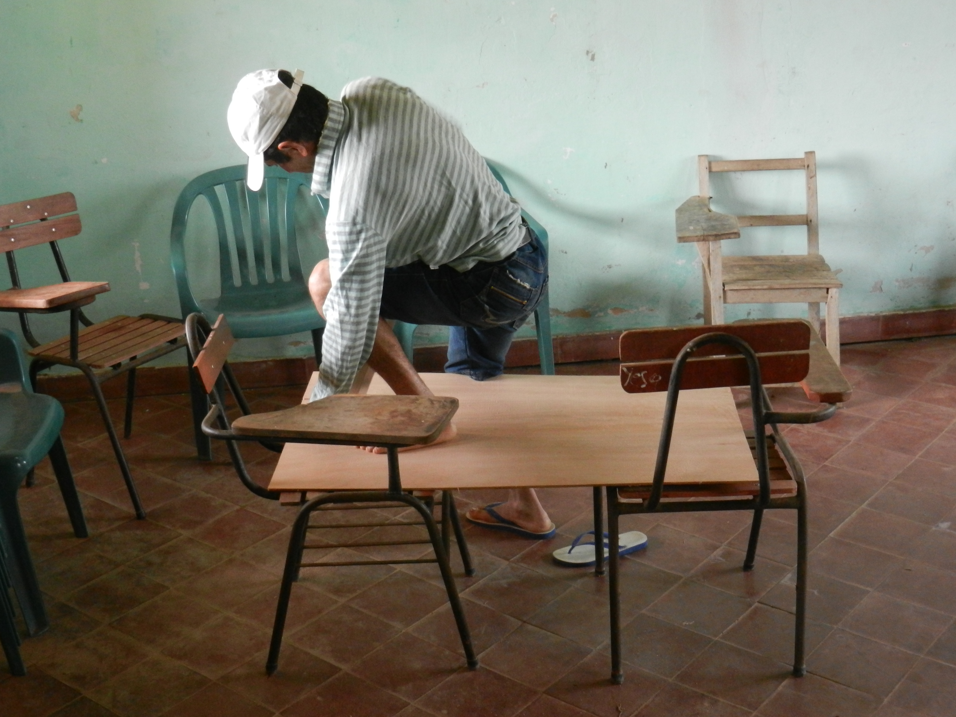 Isidro hard at work building his solar food dryer