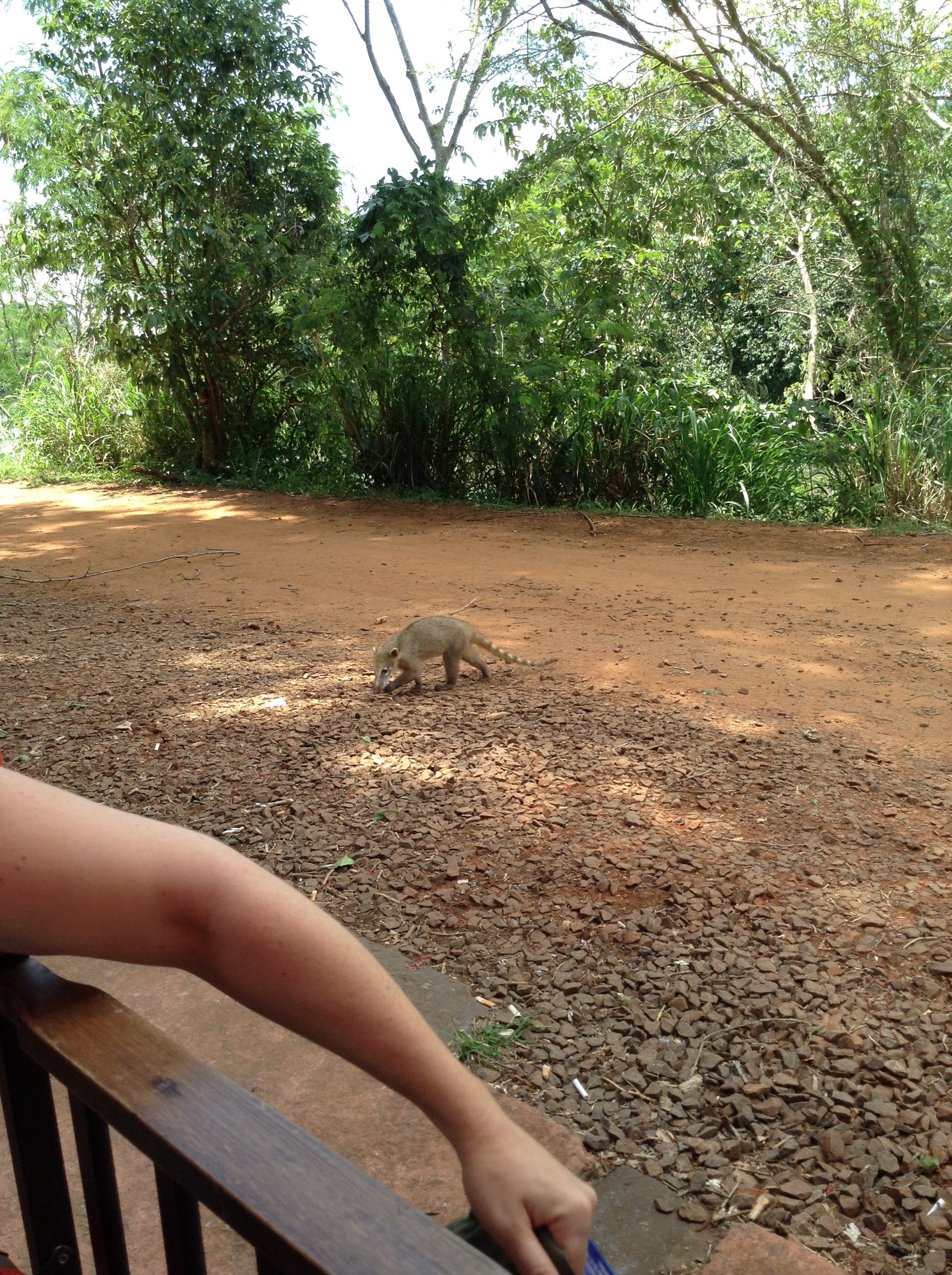 A fiesty coati; looks part raccoon, part fisher cat, part anteater, all mischief! they will steal your stuff, especially food. i had one climb up my back and try to pull my bag off me! Iguazu Falls, Argentina