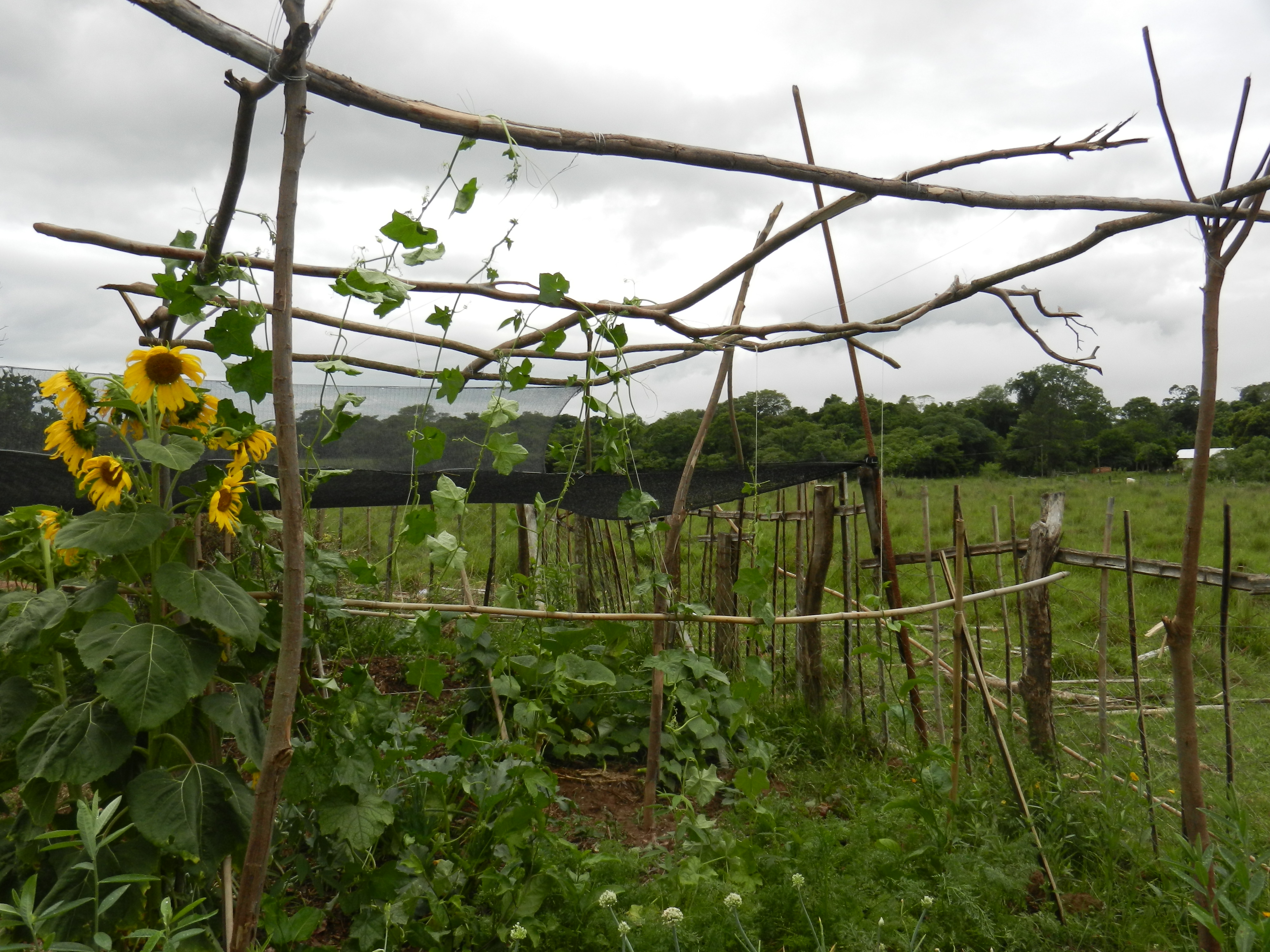 My homemade arbor for passionfruit and sponge vines. These will provide shade to the vegetables during the intense summer heat. Without shade, many vegetables literally bake on the plant!