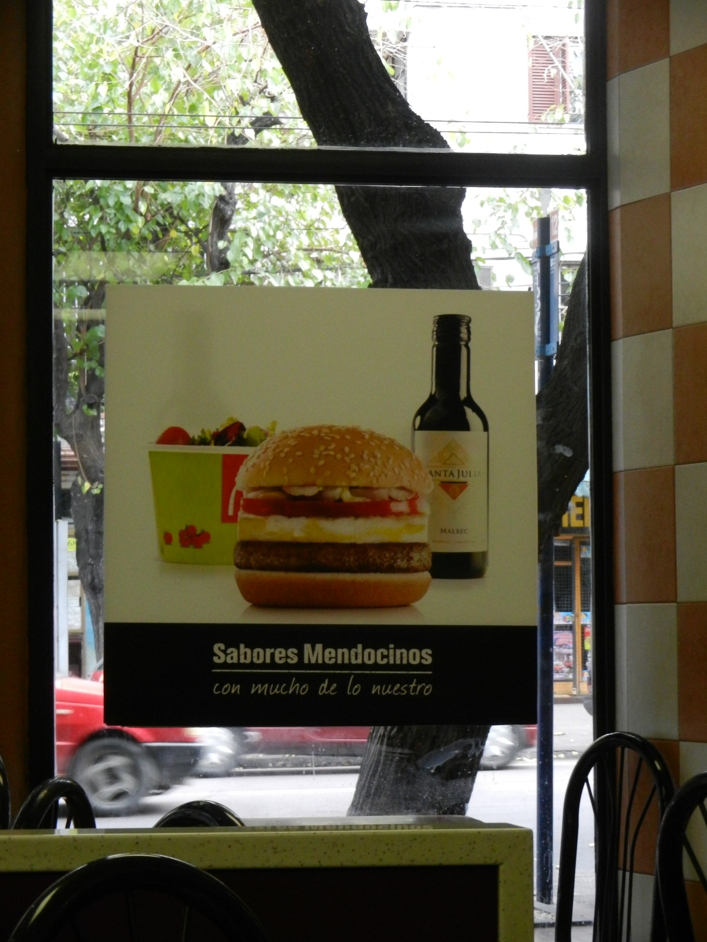 Value meal at McDonald’s in Mendoza, Argentina. Sandwich, salad and small bottle of wine!!! These people love their wine, every single day. Even at McDonald’s. haha!