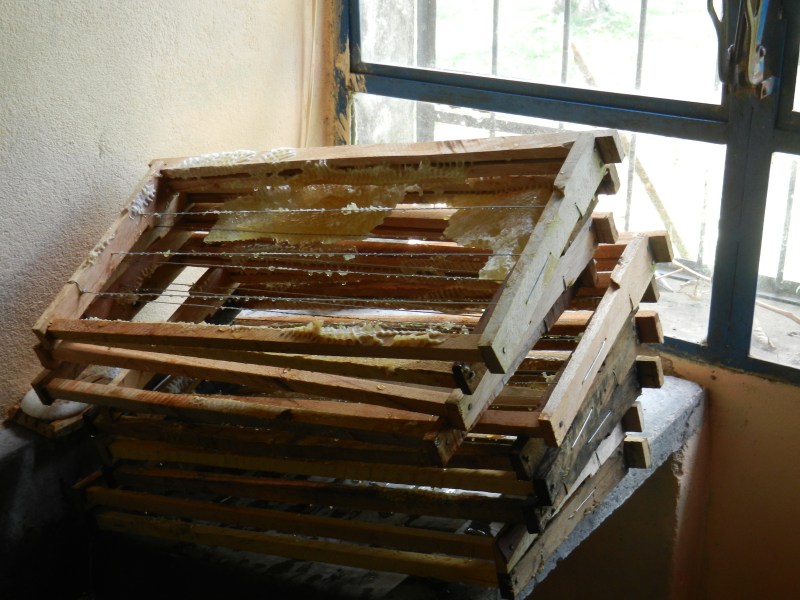 Honeycomb cut from all 10 frames, now ready to be returned to the box and the bees