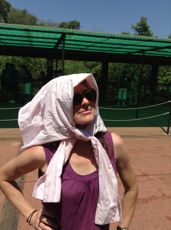 Improvising in the intense sun after losing my hat. Haha