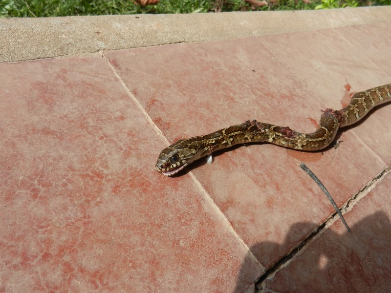 The harmless-to-humans “falsa jarara” or toad-eating snake. The species varies greatly in markings and size and is easily mistaken for the deadly Bothrops jarara so when in doubt, leave it alone!
