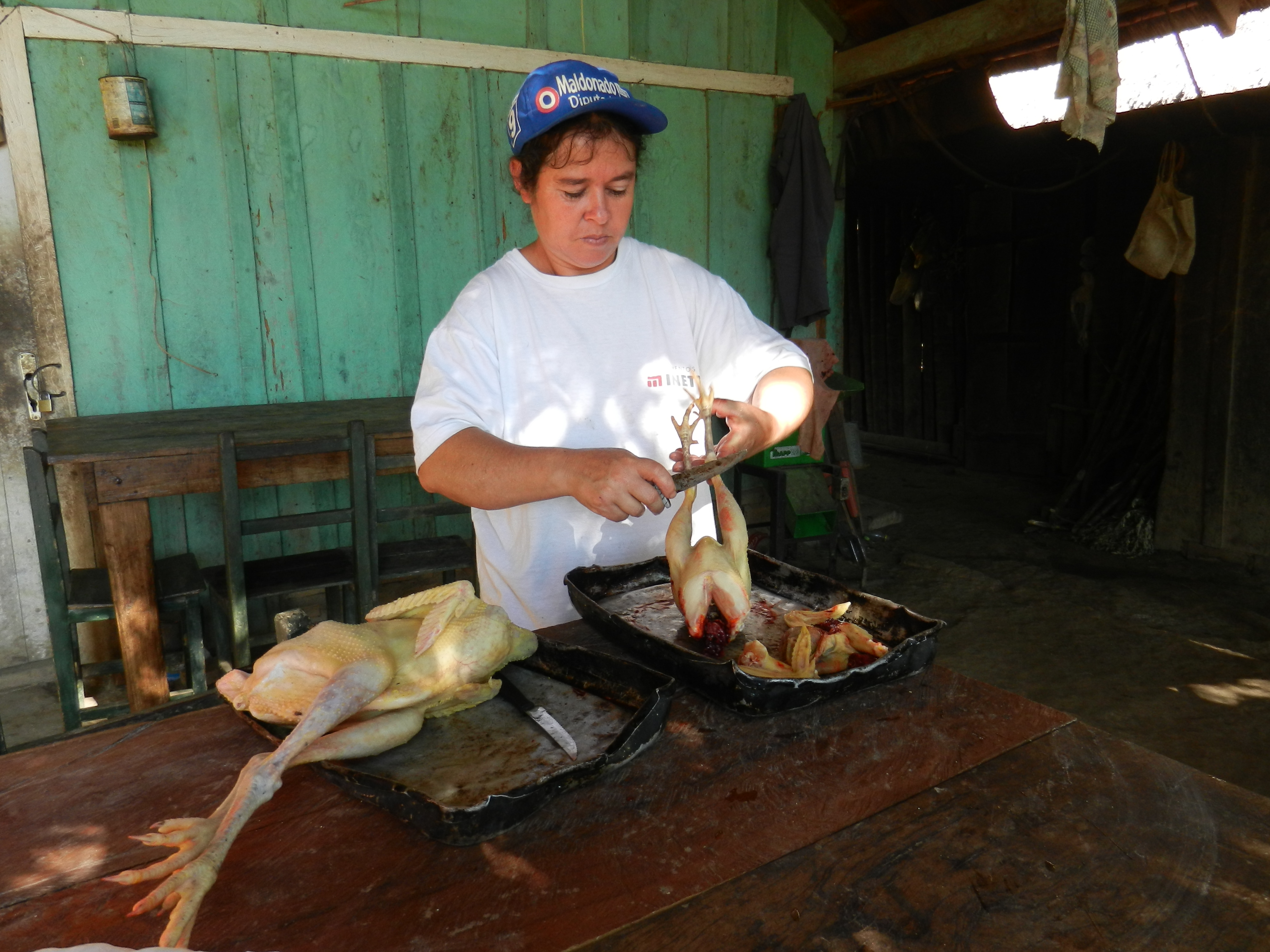 Eligia cutting up fresh chicken for her daughter’s birthday lunch